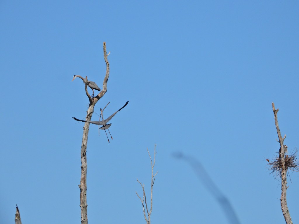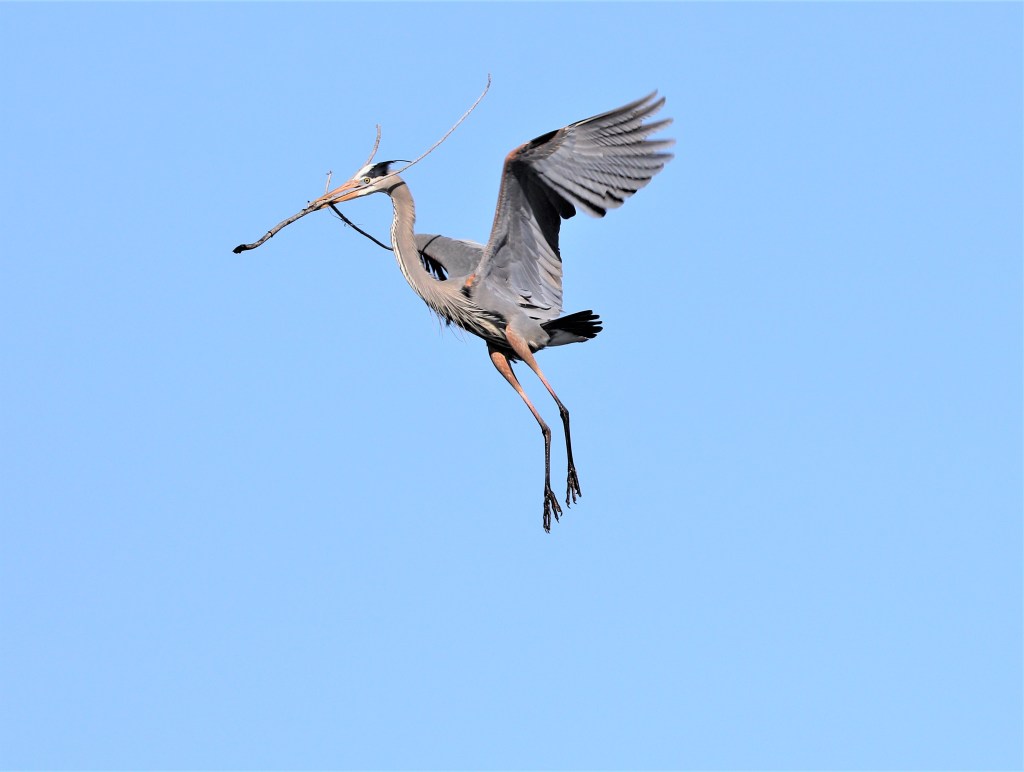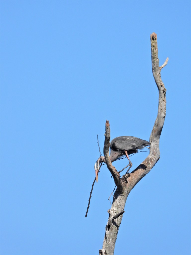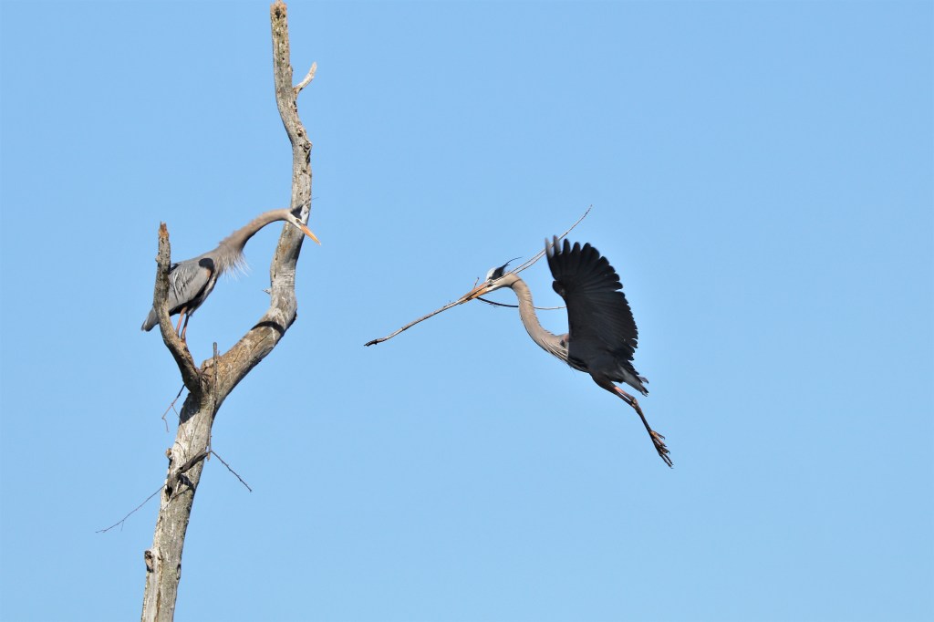 Watch as this great blue heron starts a brand-new nest.