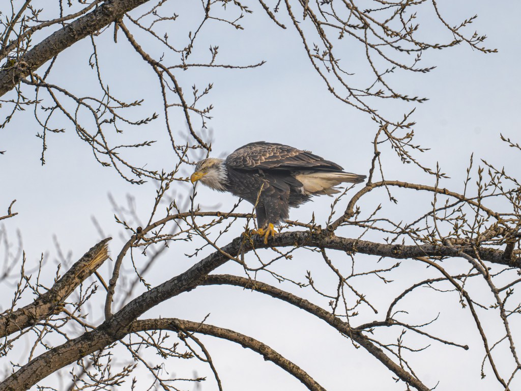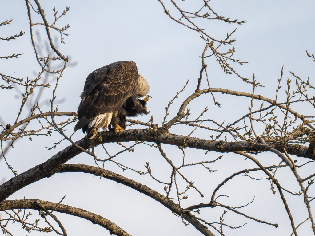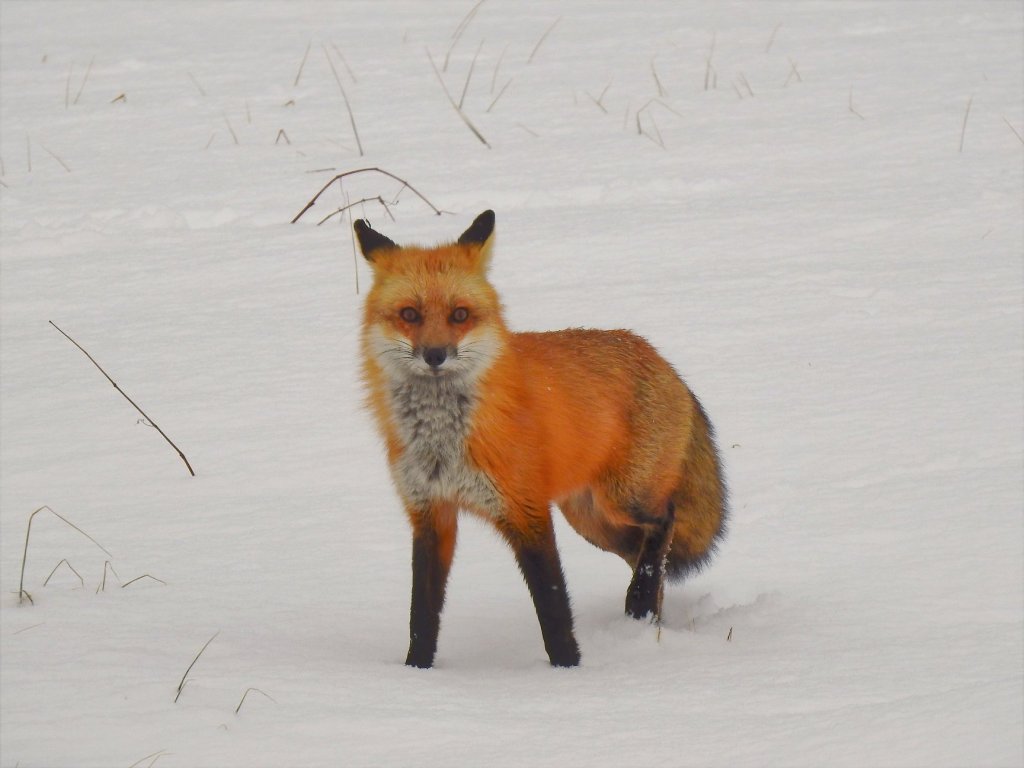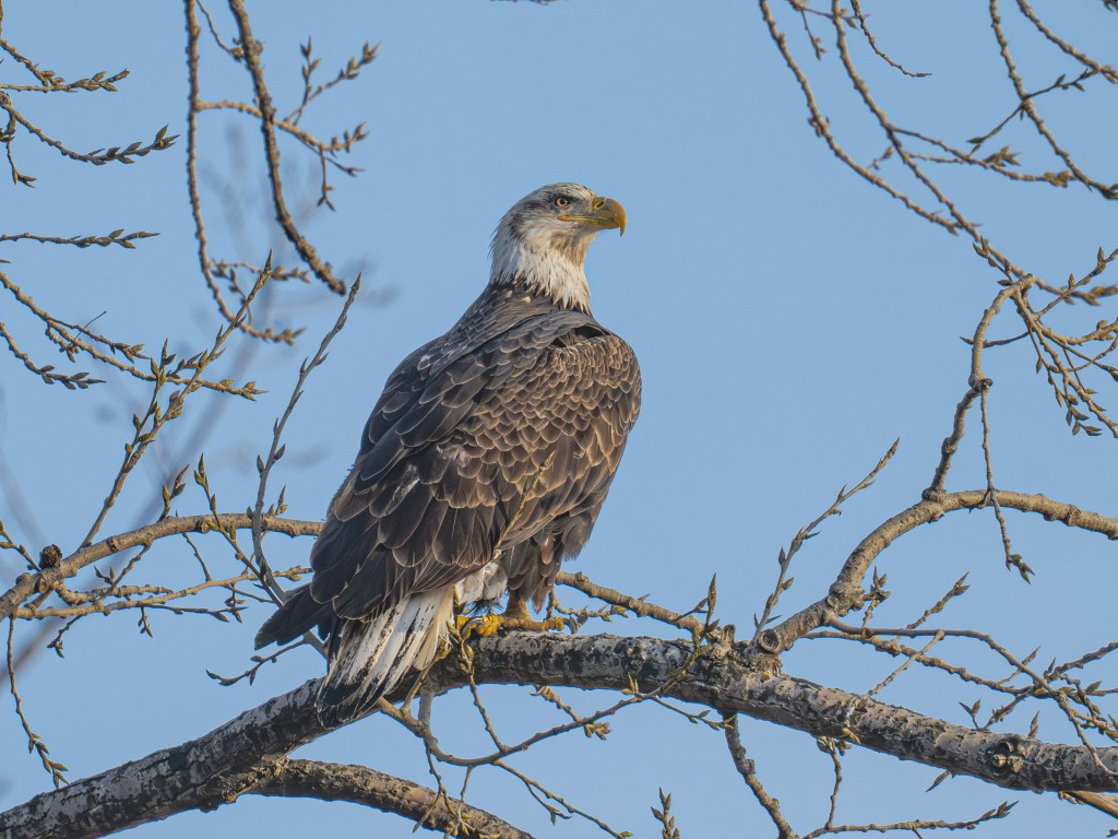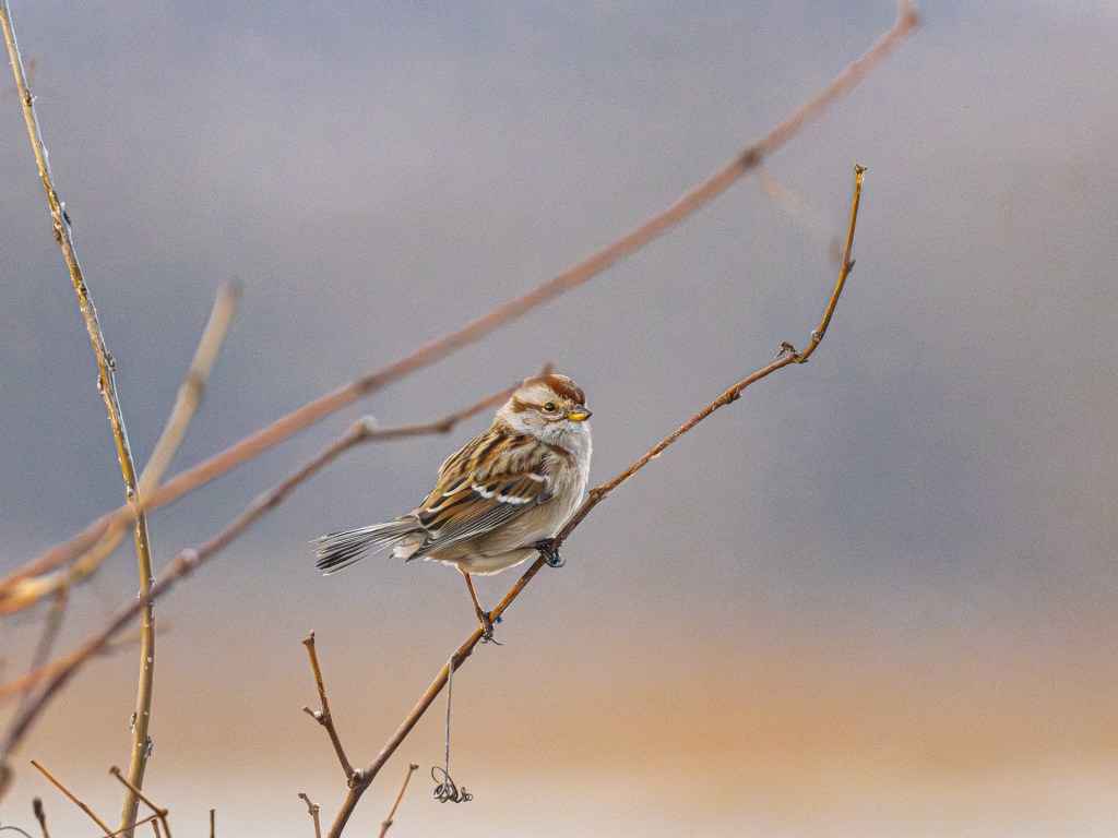 In fact, I was so intent on (visually) chasing a few more tree sparrows that I nearly missed this guy sitting in a tree, watching the show.