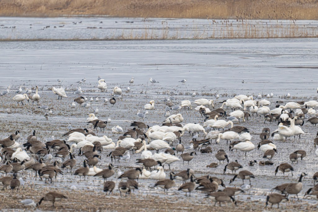 Merlin thought it heard a screech owl, so I was off to find it. No luck, but I did find a heap of trumpeter swans, a bunch of gulls, and a variety of geese hanging out in the mucklands.
